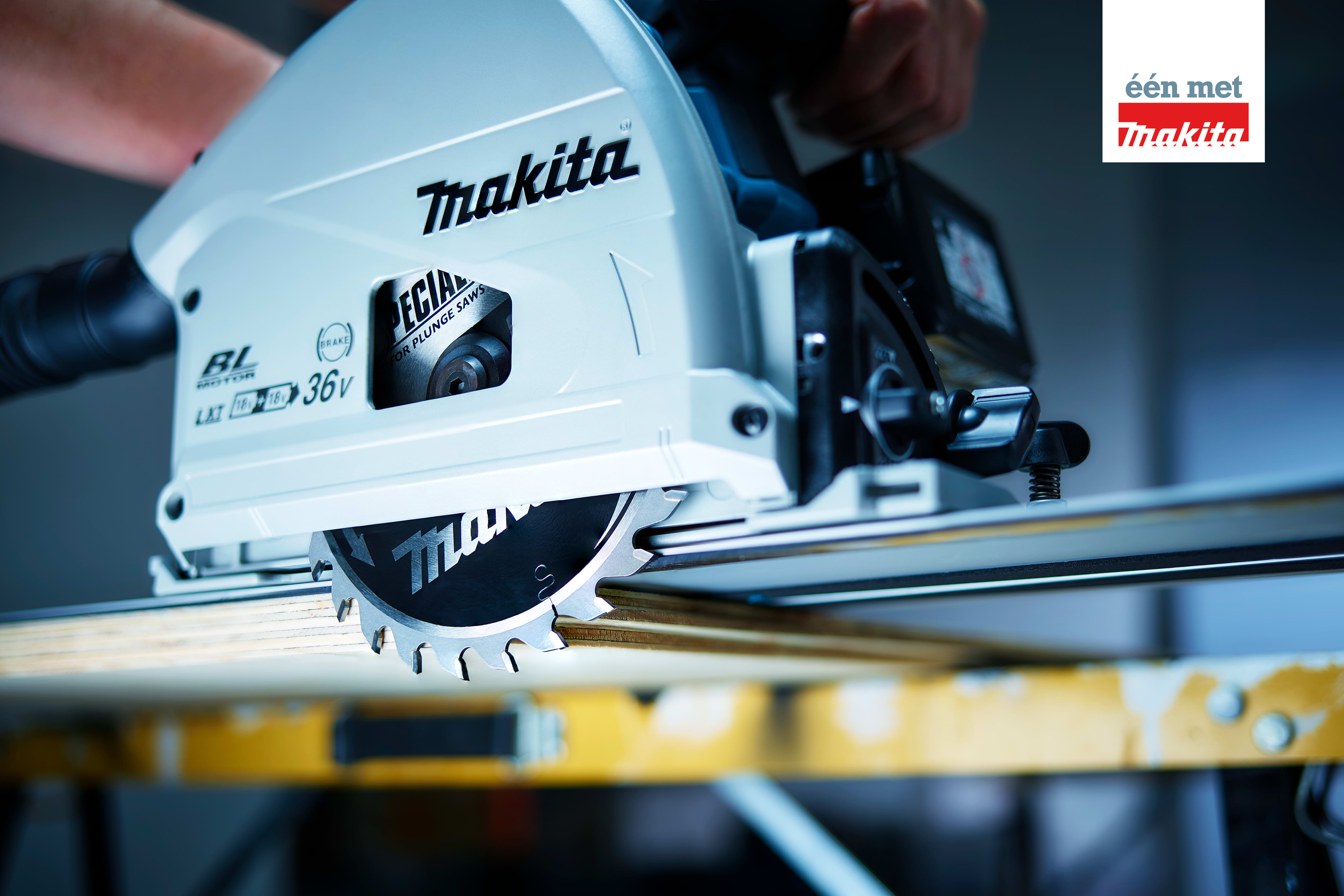 Kantelbaar van -1° tot 48° met precieze aanslagen op 0°, 22,5° en 45°. Compleet snoerloos en voorzien van soft start techniek is deze invalzaag comfortabel in gebruik. Let op: de maximale zaagcapaciteit neemt met 4 mm af zodra de machine op de geleiderail staat. De zaagsnelheid kan ook handmatig geregeld worden via een draaiknop. Altijd dezelfde zaaglijn, onder elke ingestelde hoek. Snel en zuiver zagen door constant instelbaar toerental dankzij BL-motor. Ideaal voor het nauwkeurig op maat zagen van plaatmaterialen, massieve houten panelen en voor het uitzagen van rechte uitsparingen. Beschikt over Automatic torque Drive Technology (ADT): de machine past bij weerstand elektronisch de zaagsnelheid en het koppel aan voor behoud van kracht. Dicht op de muur zagen: 18 mm minimaal. Snel en eenvoudig splintervrij zagen dankzij de voorritsfunctie. De motor is voorzien van een elektronische rem waardoor het zaagblad onmiddellijk stilstaat. Dankzij de ingebouwde vergrendeling kantelt de zaag niet van de rail als deze onder een hoek van 45° gebruikt wordt. De maximale zaagdiepte bij 0° is 56 mm. Geschikt voor het zagen van diverse materialen dankzij de variabele toerenregeling.