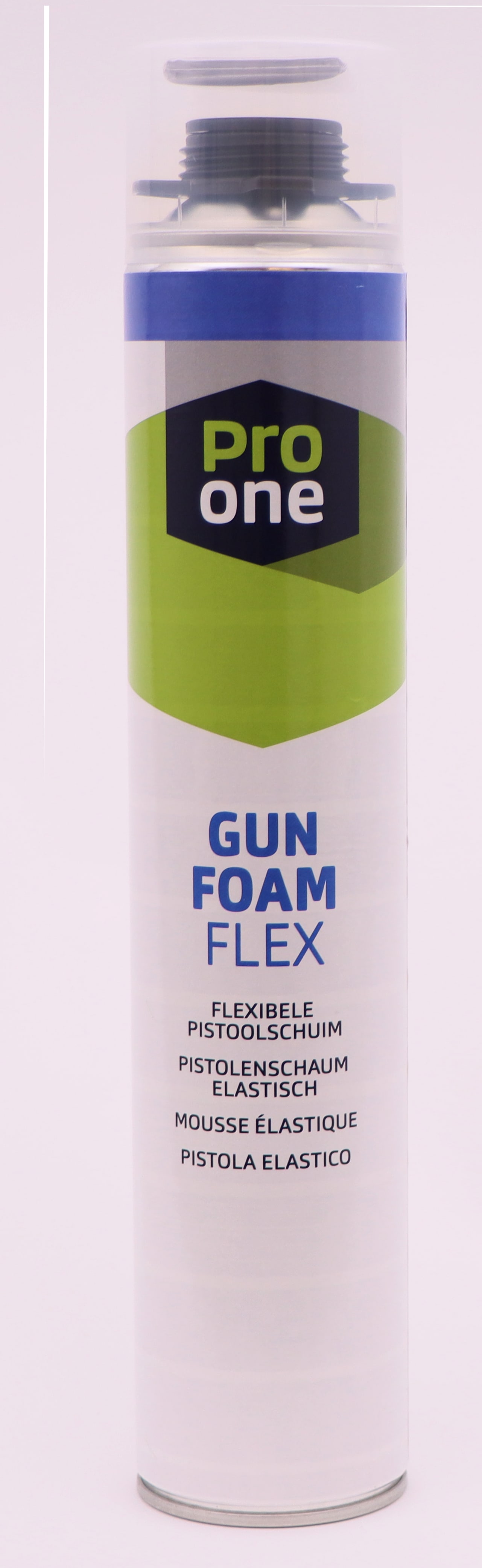 • ProOne Elastisch Pistoolschuim heeft een uitstekende hechting, duurzaam dichtende functie en hoge isolerende waarden